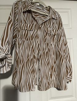 White/Brown Swirl Oversized Button Up $15Parlier, CA