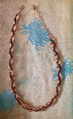 Vintage Crown Trifari Necklace: Gold Tone Swirls with Red Rhinestones $50City Of Industry, CA