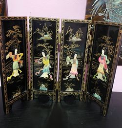 Antique Oriental Black Lacquer Wood Folding 4 Panel Table Screen Jade$50City Of Industry, CA
