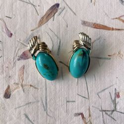 Vintage Signed Coro Faux Turquoise Gold Tone Clip On Earrings 1950s Retro $15City Of Industry, CA