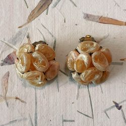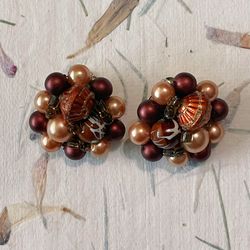 Vintage Hong Kong Brownish Red Beaded Cluster Gold Tone Clip On Earrings$10City Of Industry, CA