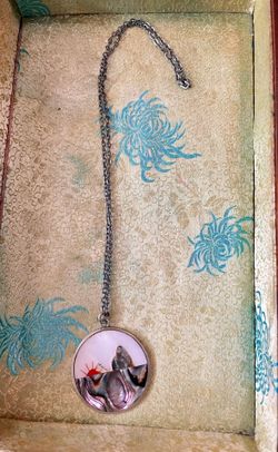 Vintage Inlaid Mother of Pearl Abalone Pendant Necklace Mountain Moon Scene$20City Of Industry, CA