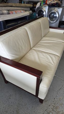 Modern Cream Leather Sofa with Wood Frame$450Fullerton, CA