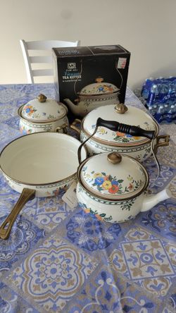 Vtg 4 Piece Dutch Oven Enamel & Brass Cookware Set $199Yorba Linda, CA