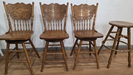 Vintage Solid Oak Swivel Bar Chairs + Matching Round Stool$350Yorba Linda, CA
