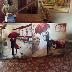 HUGE Pair Of Canvas Paintings New Dancing In Rain Red Black Neutrals Home Decor$120Arrowhed Farm, CA
