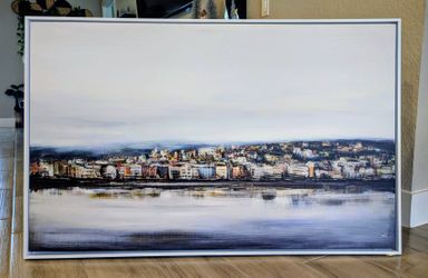 Stunning Large 49.5" x 31" Cityscape Watercolor Canvas Print – Great Condition!