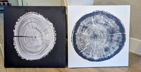 Vintage Tree Ring Print: Black and White Wood Wall Decor