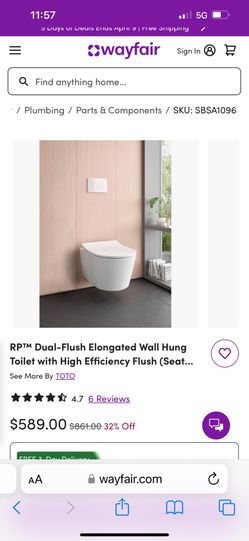Dual Flush Elongated Wall Toilet $500Redwood City, CA