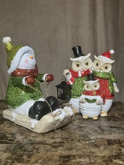 Heavy Ceramic Snowman & Owl Family Figurines$40Wesley Chapel, FL