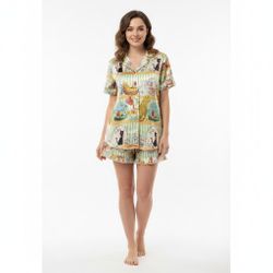 Womens Satin Pajama Set Size Large Whimsical Animal Print Cottagecore Sleepwear$32Meridian, MS