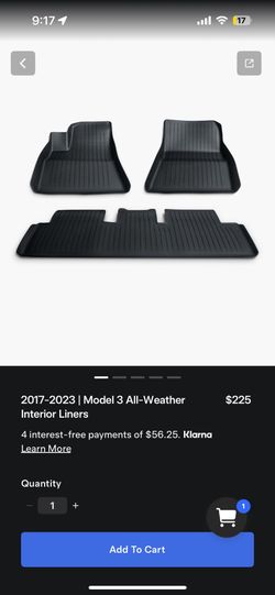 Tesla All Weather Floor Mats $200Hazard, CA