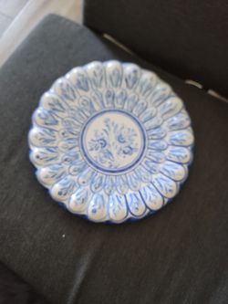 Vtg Mexican Pottery Talavera Blue & White Paneled Plate Wall Hang$65San Diego, CA