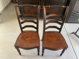Solid wood dining table. Three solid wood and leather chairs$150El Monte, CA