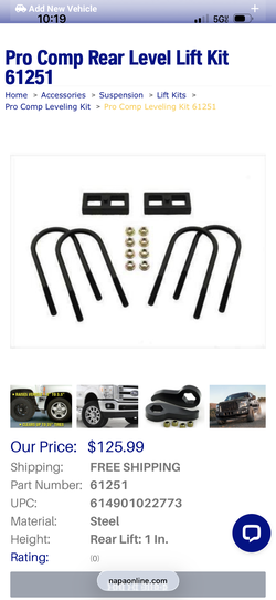 Pro Comp Rear Level Lift Kit 61251$100Chino Hills, CA