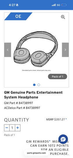GM Genuine Parts Entertainment System Headphone$200Chino Hills, CA