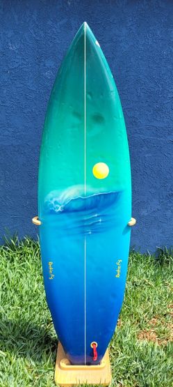 1980's Rockin Fig surfboard, double bump channelled botton and original Star Fins with the stickers still attached$500Lakewood, CA