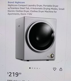 Nightcore Compact Laundry Dryer, Portable Dryer w/Stainless Steel Tub, 4 Automatic Drying Modes, Small Electric Clothes Dryer, Clothes Dryer Machine f$110Glendale, AZ