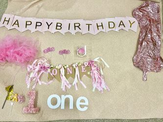 1st baby girl birthday, pink decor bundle, all for $30 + highchair pink tulle, birthday crown $30Artesia, CA