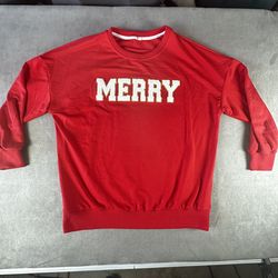 Merry Christmas Sweatshirt Red Holiday Crewneck Chenille Letters Women’s S$10Grand Terrace, CA