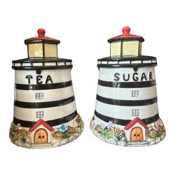 Lighthouse Tea & Sugar Canister Set Ceramic Kitchen Jars 7” Nautical$15Grand Terrace, CA