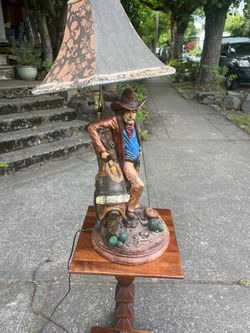 1970’s Vintage California Original 1979 Cowboy saddle desert Lamp chalkware plaster $150Portland, OR