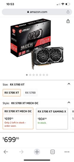 MSI Gaming Radeon Rx 5700 Xt Boost Clock: 1925 MHz 256-bit 8GB GDDR6 DP/HDMI Dual Fans Crossfire Freesync Navi Architecture Graphics Card (RX 5700 Xt $395South Pasadena, CA