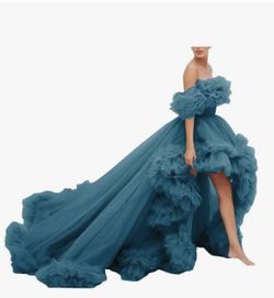 High Low Ruffle Tulle Prom Dress Off Shoulder Ruffles Ball Gown Long Puffy Evening Dress for Wedding CY72$50Los Angeles, CA