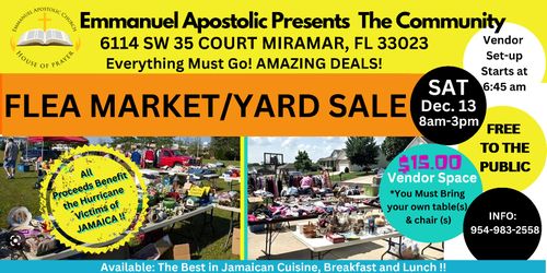 MIAMI-MIRAMAR Yard Sale/Flea Mar. Sat, 12/13$10North Miami Beach, FL