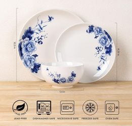 Ceramic Dish Set for 4 - White w/ Blue Peony Flower Pattern - 12 Pieces NEW - 2 Sets Available$30Sun City, AZ