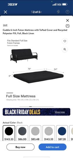 Caddie 6-Inch Futon Mattress with Tufted Cover and Recycled Polyester Fill, Full, Black Linen$100Winston-salem, NC