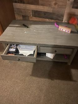 Gray Wood Coffee Table With Drawers And Light Stand$100Allentown, PA