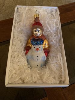 Rare Blown Glass Vintage Boy With Snowman NORDSTROM Ornament. $20San Diego, CA