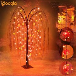 4FT Lighted Willow Tree Fall Decoraions for Thanksgiving Party , 144 LED Light Up Willow Tree with Pumpkin Maple Leaves Hazelnuts Ornament $20Gardena, CA