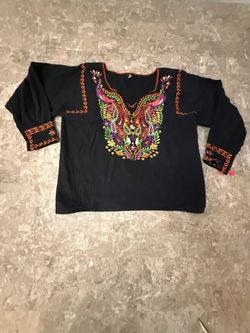 Mexican Embroidered Top small Black Floral Boho Hippie Shirt Blouse 3/4 sleeve$28Chula Vista, CA