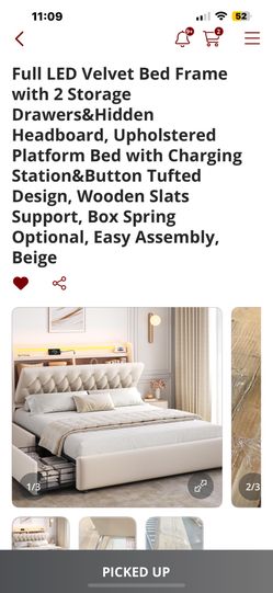 Full size bed with led strip and plug and usb ports$275Houston, TX