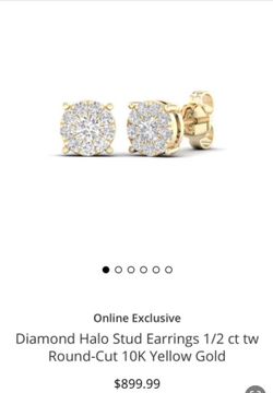 Diamond Halo Stud Earrings 1/2 ct tw Round-Cut 10K Yellow Gold$460Houston, TX
