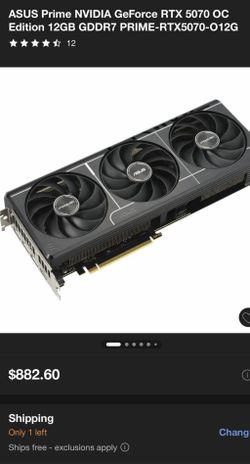 ASUS Prime NVIDIA GeForce RTX 5070 OC Edition 12GB GDDR7 PRIME-RTX5070-012G$600Wasco, CA