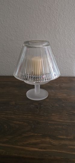 Elegant Ribbed Glass Hurricane Candle Holder with White Frosted Base$30Aurora, CO