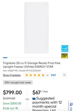 Frigidaire 20 Cu Ft Upright Freezer $299Chandler, AZ