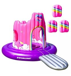 SWIMLINE Giant Inflatable Unicorn Castle Pool Float For Kids And Adults Size| Floating Kingdom Raft Lounger Combo With Gate Shield Windows & Accessor$100Henderson, NV
