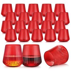 24 Pack Red Plastic Wine Cups for Party, 14oz Disposable Stemless Ribbed Wine Glasses for Christmas, Unbreakable Outdoor Cocktail Glasses, Heavy Duty $15Henderson, NV