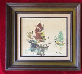 Vintage Y. W. Leung Wood Framed Original Oil On Canvas Painting of Asian Boats$300Los Angeles, CA
