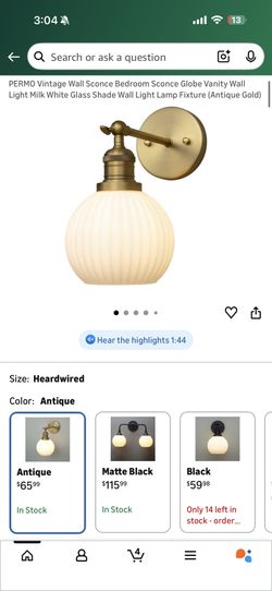 Vintage Wall Sconce Bedroom Sconce Globe Vanity Wall Light Milk White Glass Shade Wall Light Lamp Fixture (Antique Gold)$16Dallas, TX