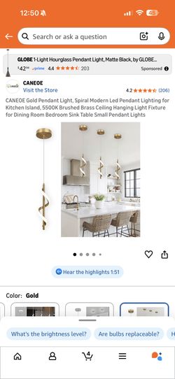 Brikey Brass Gold Pendant Light with Clear Glass, Ceiling Light for Bedside, Dining Table, Kitchen Island (7.8 Inch)$25Dallas, TX