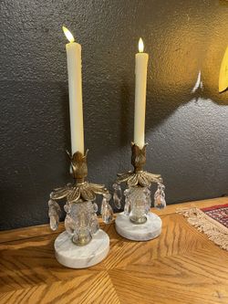 Pair Of Hollywood Regency Brass/glass/marble Candle Holders Vintage $80Portland, OR
