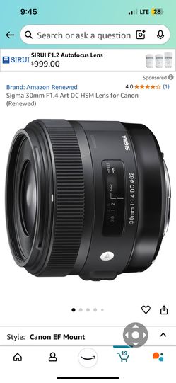 Sigma 30mm F1.4 Art DC HSM Lens for Canon - New$275Concord, CA