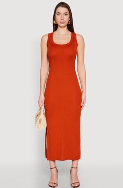 Flattering Ribbed Knit Sleeveless Tank Side Slit Maxi Dress Rust $25Wesley Chapel, FL