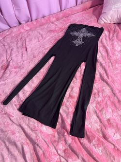 Black Rhinestone Cross Strapless Long Split Dress | Y2K Gothic π€$25Sacramento, CA