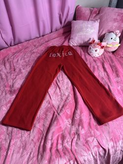 Super comfy red sweatpants with rhinestone toxic design β€οΈβπ₯β¨$18Sacramento, CA